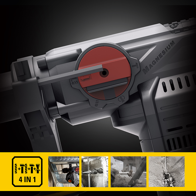 - มี 4 ฟังก์ชัน: เจาะไม้-เหล็ก, ปูน,